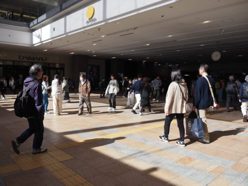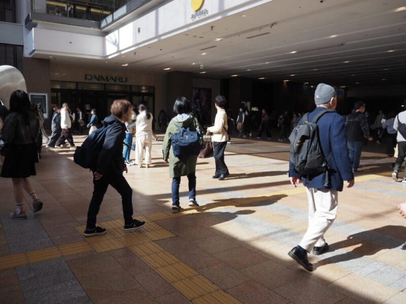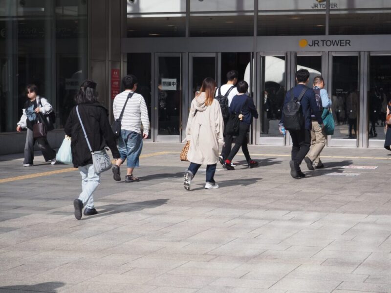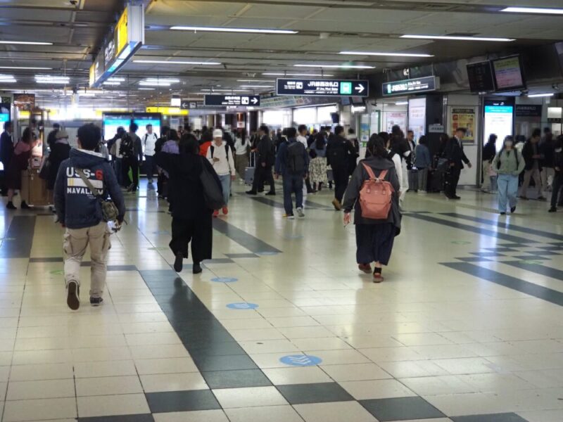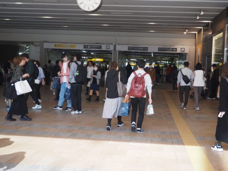 スーツケースを持った観光客と思われる人たちがJR札幌駅近辺にいます。
