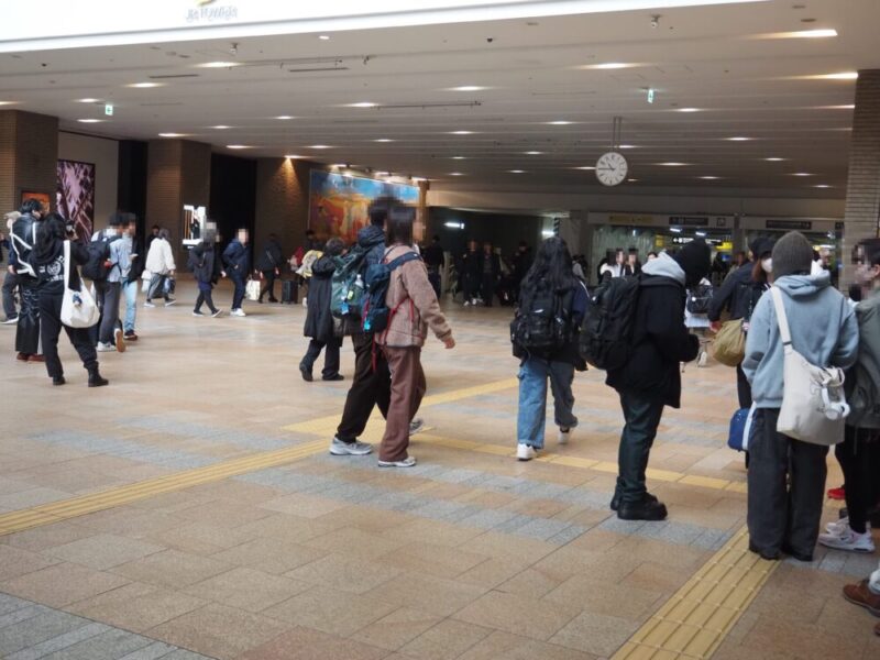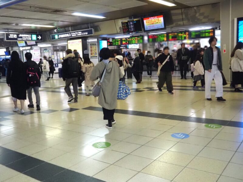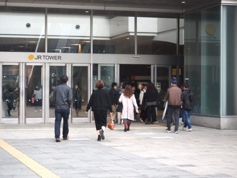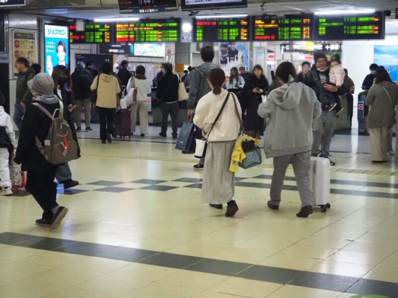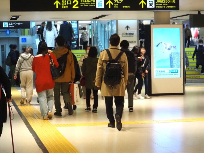 スーツケースを持った観光客と思われる人たちがJR札幌駅近辺にいます。